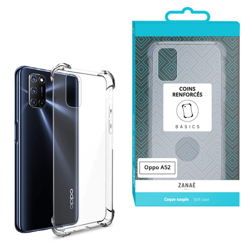 Coque Silicone transparent avec coins renforces pour Oppo A52, Transparent