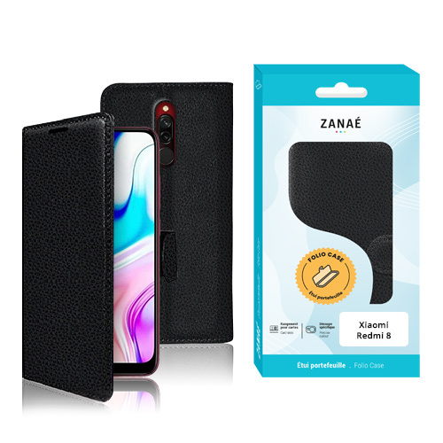 Etui Portefeuille Zanae pour Xiaomi Redmi 8, Noir