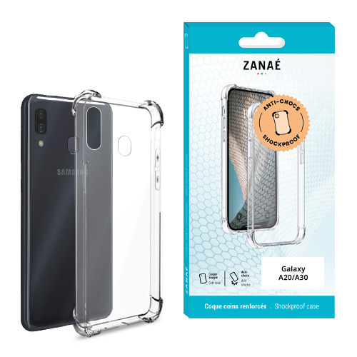 Coque Silicone transparent avec coins renforces pour Galaxy A20/30, Transparent