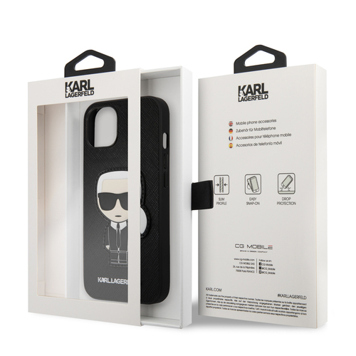 Coque finition Saffiano avec motif Avatar Karl pour iPhone 13, Noir