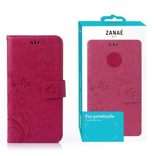• Etui Portefeuille Flower pour iPhone 14, Fushia