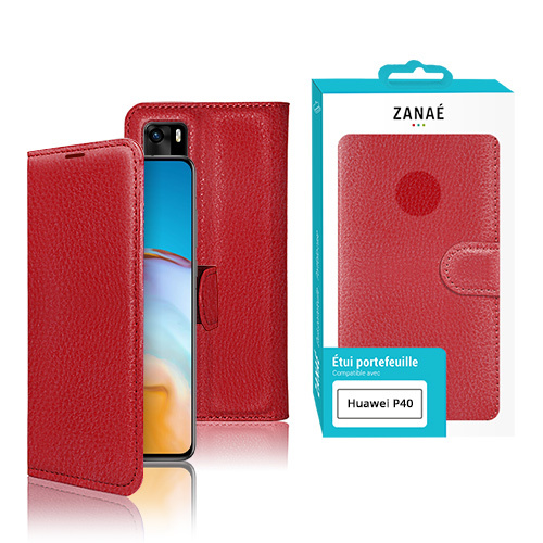 Etui Portefeuille Zanae pour Huawei P40 Rouge