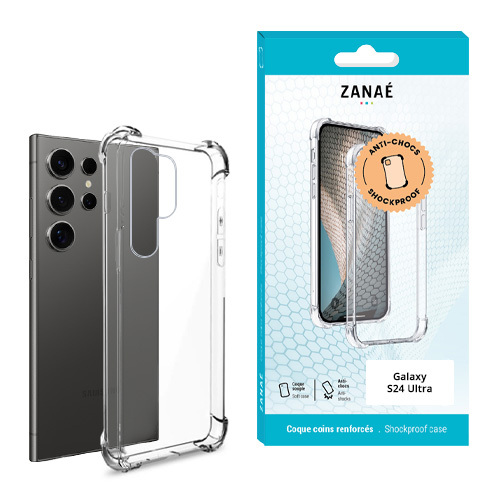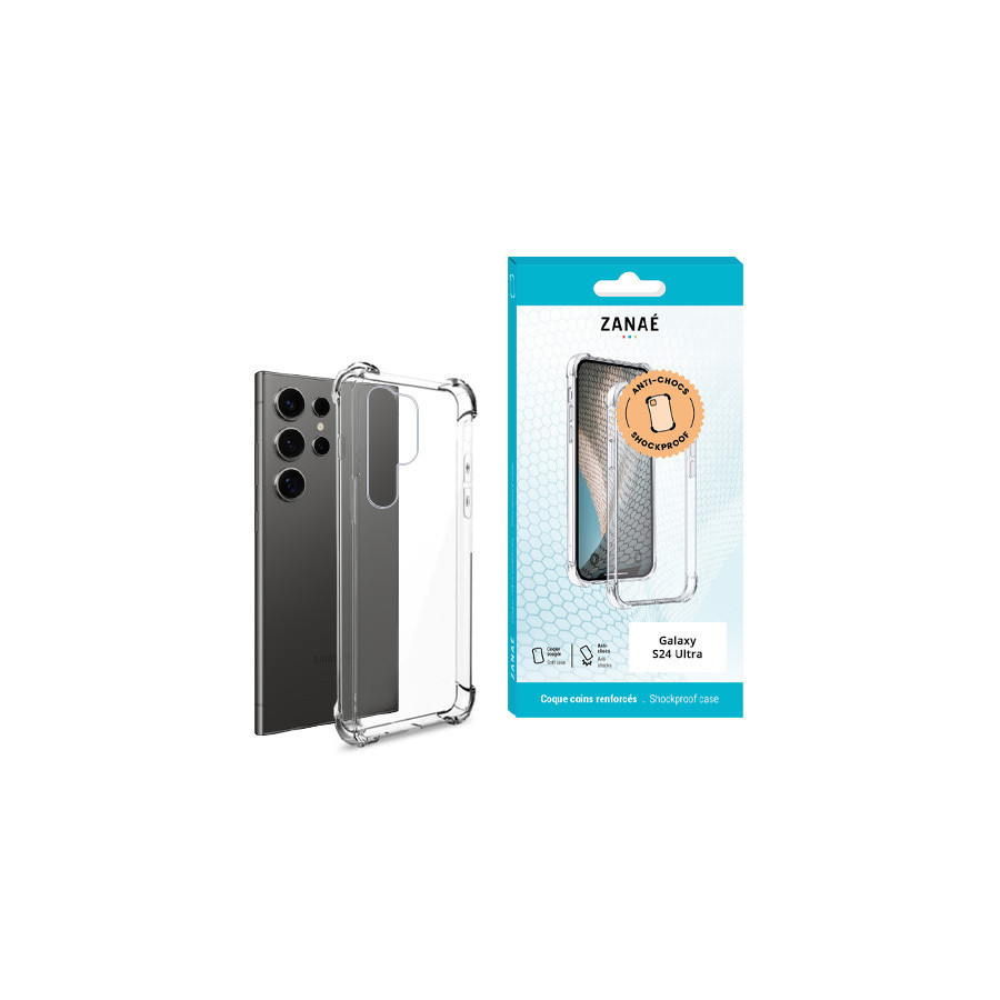 Coque Silicone transparent avec coins renforces pour Galaxy S24 Ultra, Transparent