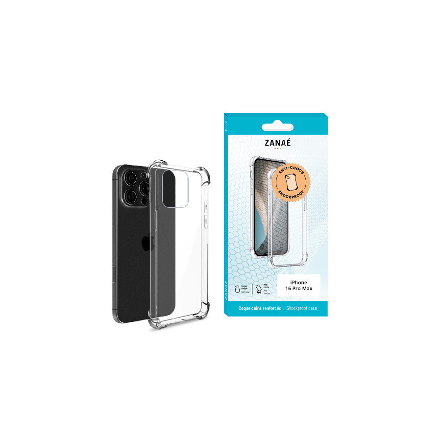 Coque Silicone transparent avec coins renforces pour iPhone 16 Pro Max, Transparent