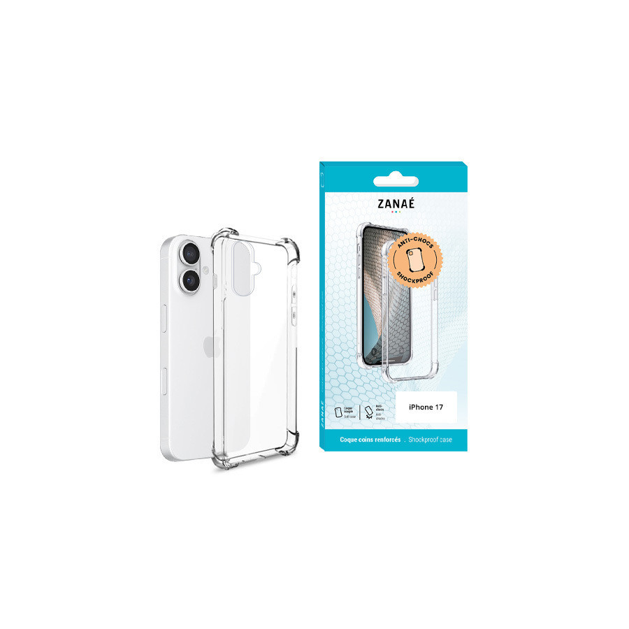 Coque Silicone transparent avec coins renforces pour iPhone 17, Transparent