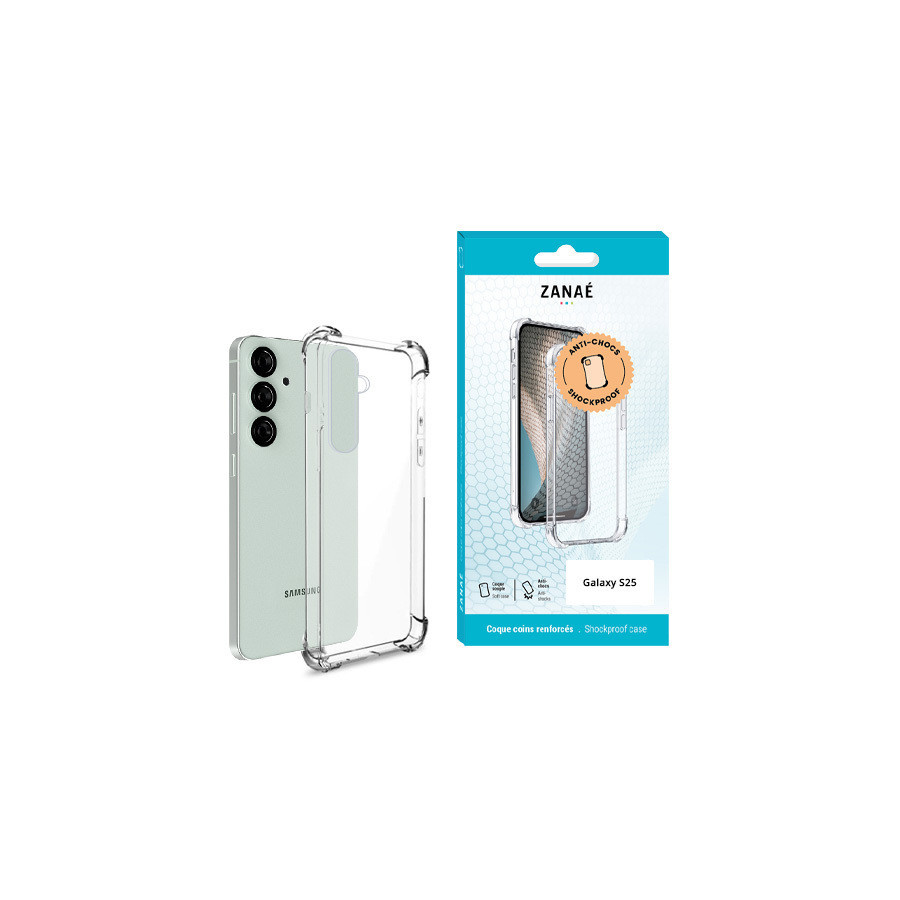 Coque Silicone transparent avec coins renforces pour Galaxy S25, Transparent